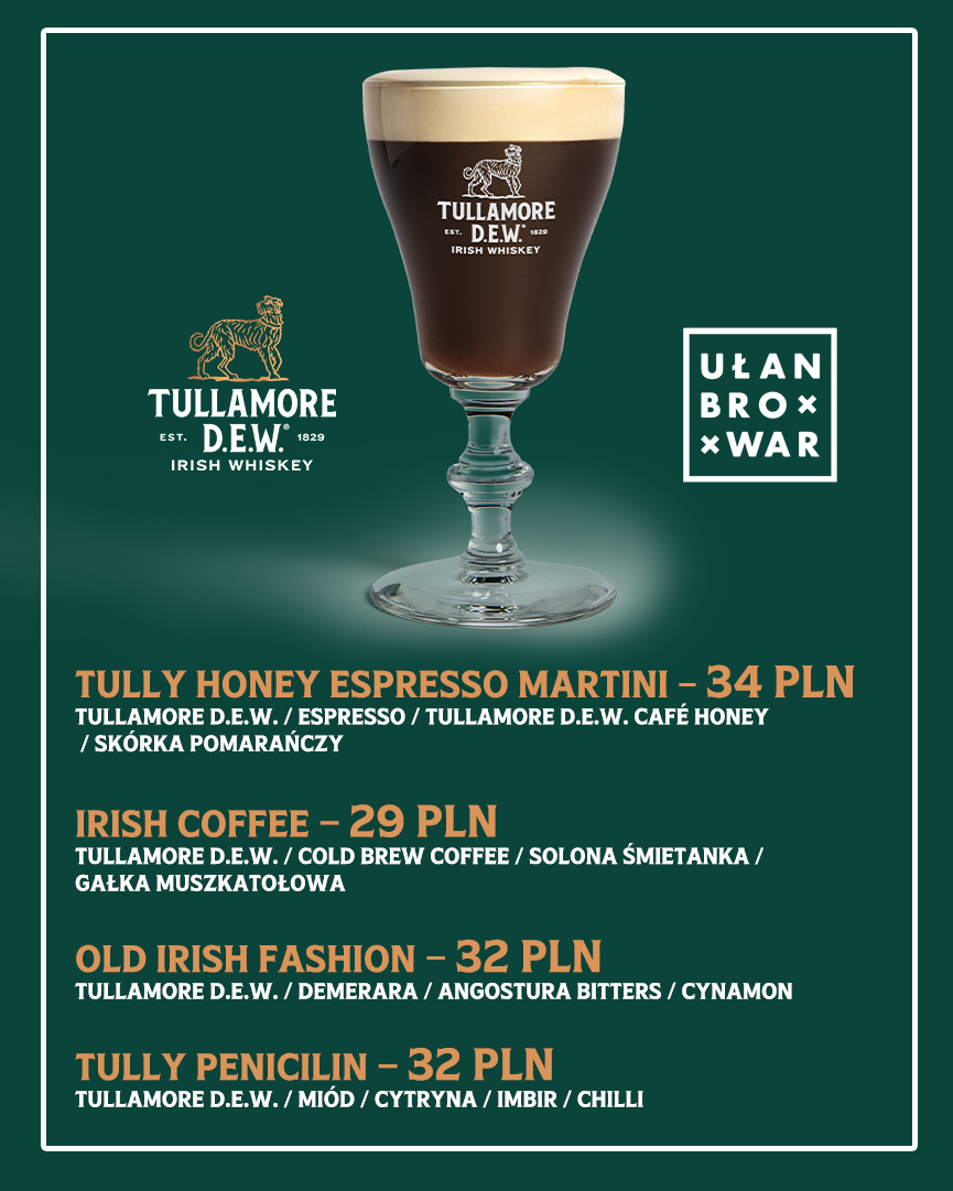 Ułańska szarża spotyka irlandzką legendę. Przez cały miesiąc serwujemy autorskie koktajle na Tullamore D.E.W.!
